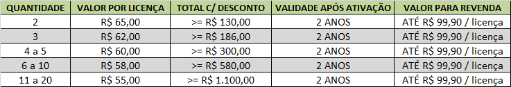 → Adquira lotes de licenças com valores reduzidos. Na página de compra selecione a quantidade de licenças que deseja e garanta o desconto na tabela abaixo: