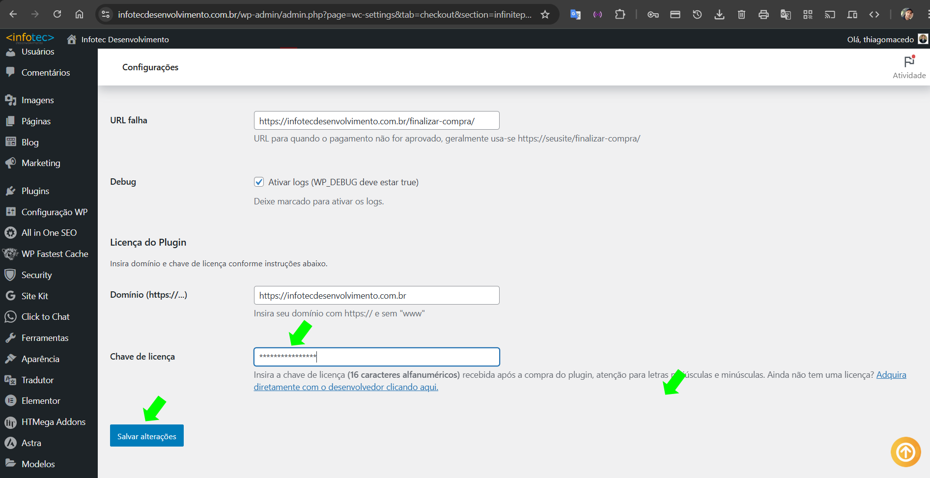 O plugin inclui um sistema de verificação de licença vinculado ao domínio. Dessa forma, você mantém o uso autorizado e a proteção do desenvolvedor. Além disso, o sistema de licenciamento garante conformidade com as políticas da InfinitePay e segurança total para sua loja virtual.
